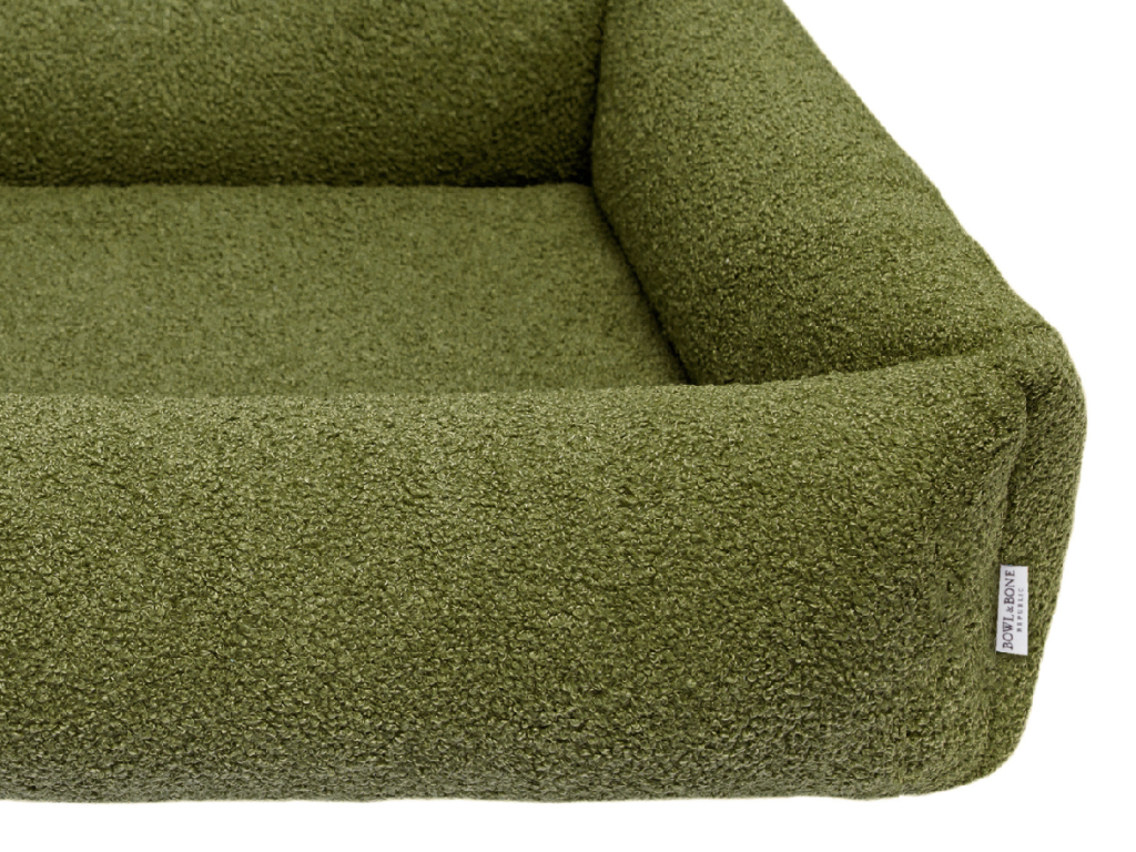 Zelený ortopedický pelíšek pro psa HARMONY od Bowl&Bone Republic je odolný a snadný na údržbu. Použitý materiál "boucle" je velmi příjemný a odolný, také pejsky oblíbený. Jednoduchý styl a decentní design padne do každého interieru. Spodní část pelíšku má protiskluzovou úpravu. Potah matrace s paměťovou pěnou i boky pelechu mají zip, díky kterému snadno a rychle sundáte potah. Potah je možné prát ručně nebo v pračce na šetrný program do 30°C. Výška matrace u všech velikostí je 5 cm (3 cm paměťové pěny + 2 cm molitanu). Tato molitanová výplň je také v samostatném a snímatelném (vodě odolném) potahu, což je skvělé pro štěňátka a nebo inkontinenční psy - loužička se nedostane až na samotnou výplň.